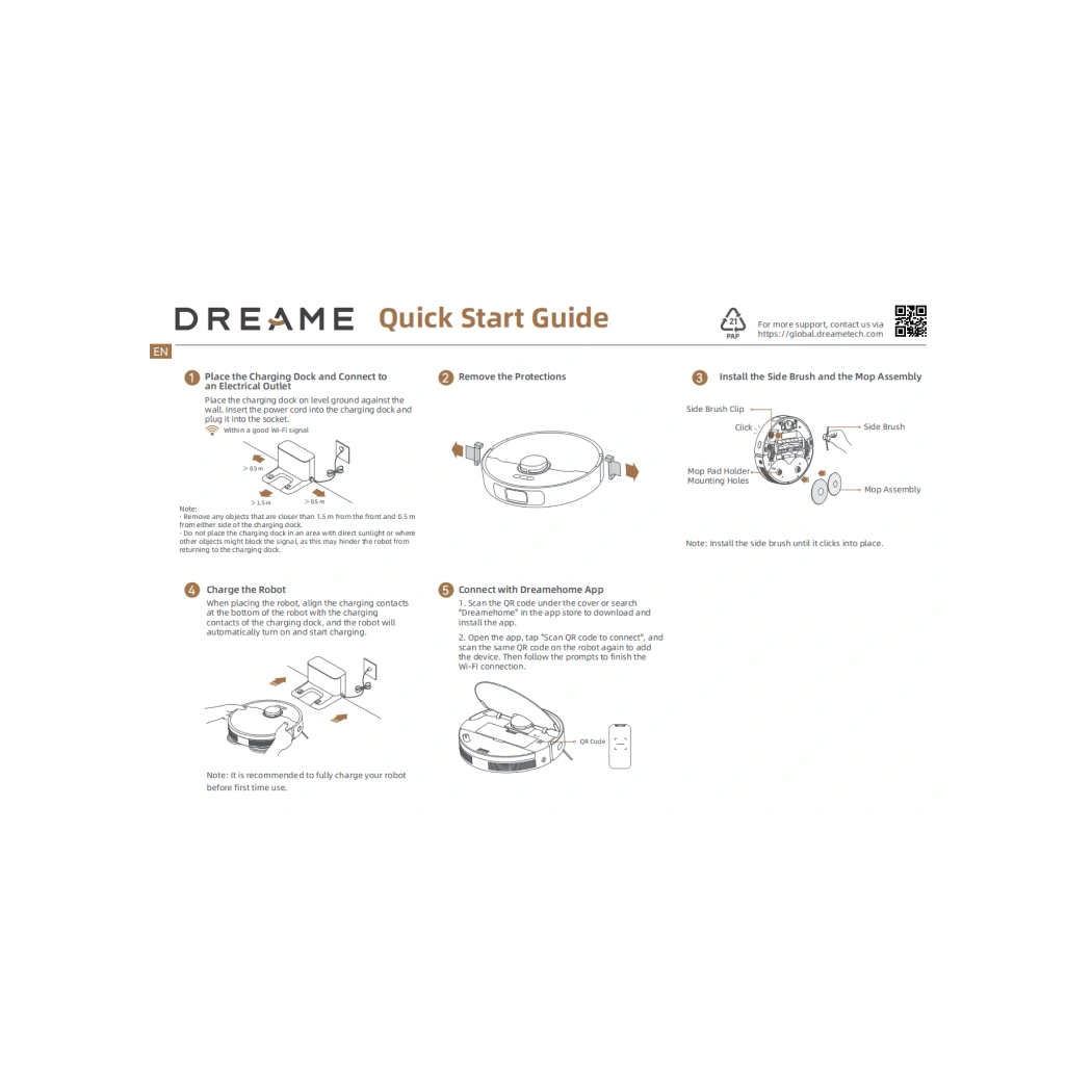 *Para evitar que se mojen, recomendamos configurar el robot para esquivar alfombras de pelo medio y alto a través de la app Dreame.