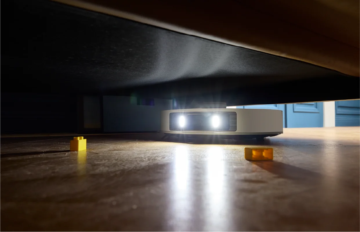 La navegación inteligente Pathfinder™, AI Action y el sistema de evasión de obstáculos con luz estructurada en 3D se combinan para conocer tu casa, identificar 55 tipos diferentes de obstáculos y planificar cómo limpiar de forma más eficaz.