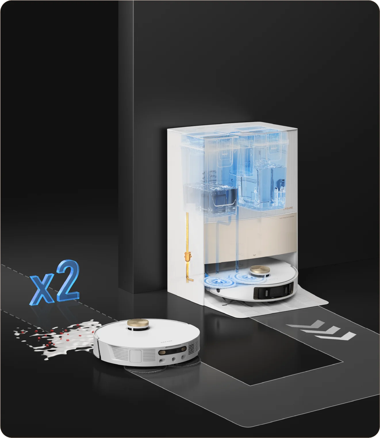 Vaciado automático, lavado de mopas, llenado de agua, relleno de solución de limpieza y mucho más, mantén el robot en perfecto estado para que la limpieza sea más manos libres que nunca.