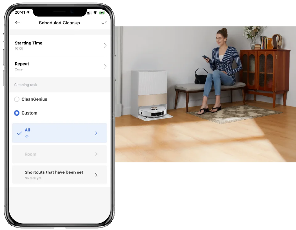 Toma el control a través de la aplicación para adaptar la limpieza a tu hogar y a tu horario.