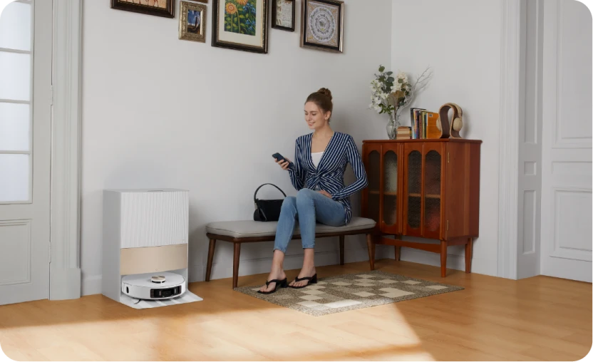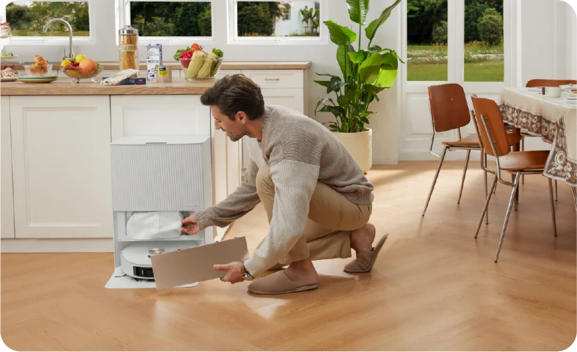 Automatiza tu limpieza diaria, y al volver a casa disfrutarás de unos suelos recién limpios, además de un olor y una sensación agradables, gracias a una estación base totalmente automática.Mantén tu robot en perfecto estado con las funciones de vaciado automático, lavado de mopas, llenado de agua, relleno de solución de limpieza y mucho más, para una limpieza más manos libres que nunca.