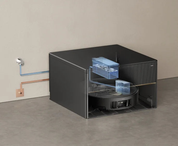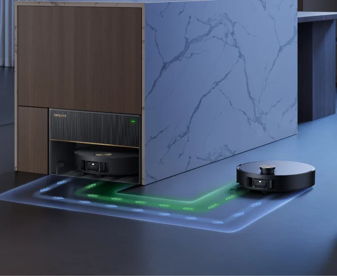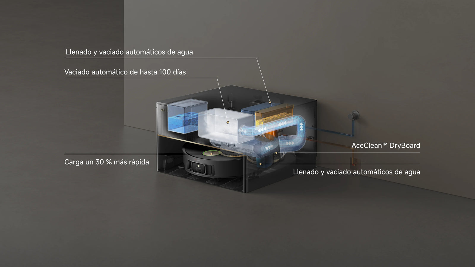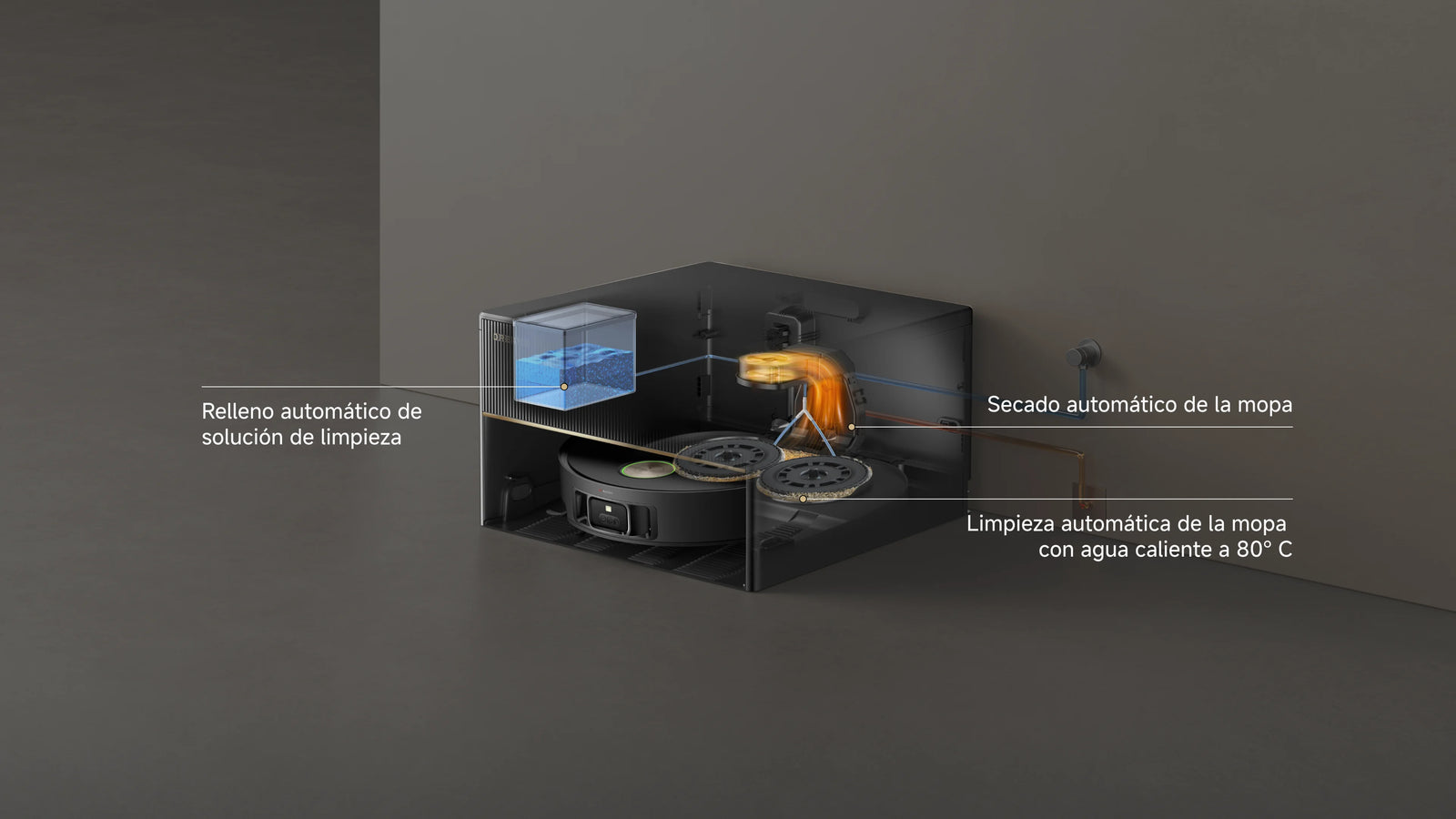 Olvídate de las tareas manuales y de levantar objetos pesados. Disfruta de un aspirado autónomo de hasta 100 días*, mopas que se limpian automáticamente con agua caliente, llenado automático y sistemas de secado. Las funciones se combinan para facilitar la limpieza, reducir el mantenimiento y mantener tu hogar fresco, sin esfuerzo.