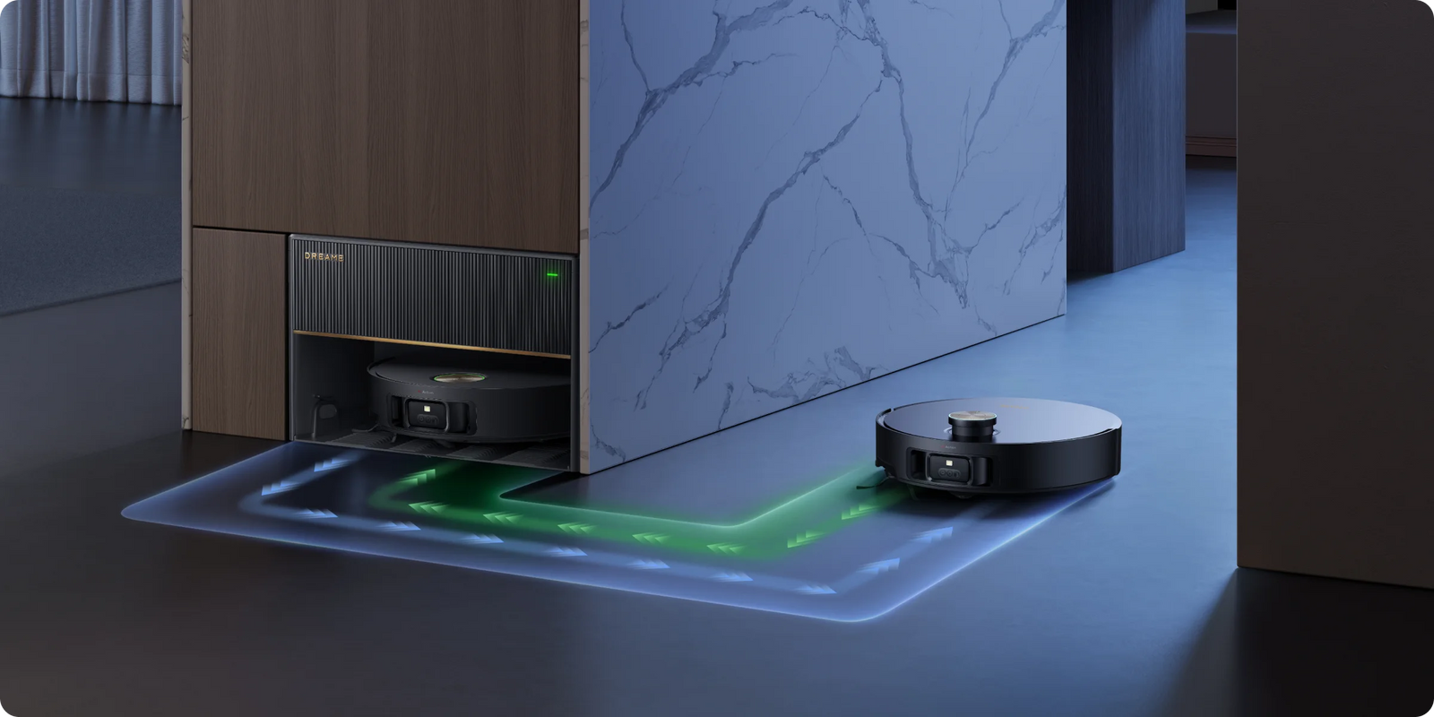 Con la aplicación Dreamehome, puedes personalizar las estrategias de limpieza para diferentes tipos de alfombra, lo que garantiza que se mantengan limpias sin que se empapen, ensucien o dañen. Para las alfombras de dormitorio de pelo largo, X50 Master retira automáticamente las mopas para no mojarlas. Realizará únicamente un aspirado para ofrecer una limpieza suave y eficaz.