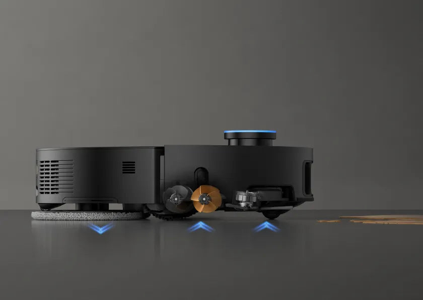 ¡Acaba con la suciedad y esquiva obstáculos! Gracias a la luz estructurada en 3D y la IA, X50 Master identifica más de 200* objetos y detecta de todo, desde cables sueltos hasta calcetines. Se mueve de forma segura alrededor de objetos más grandes, como zapatos y estaciones de carga, para asegurarse de que el suelo queda impecable.