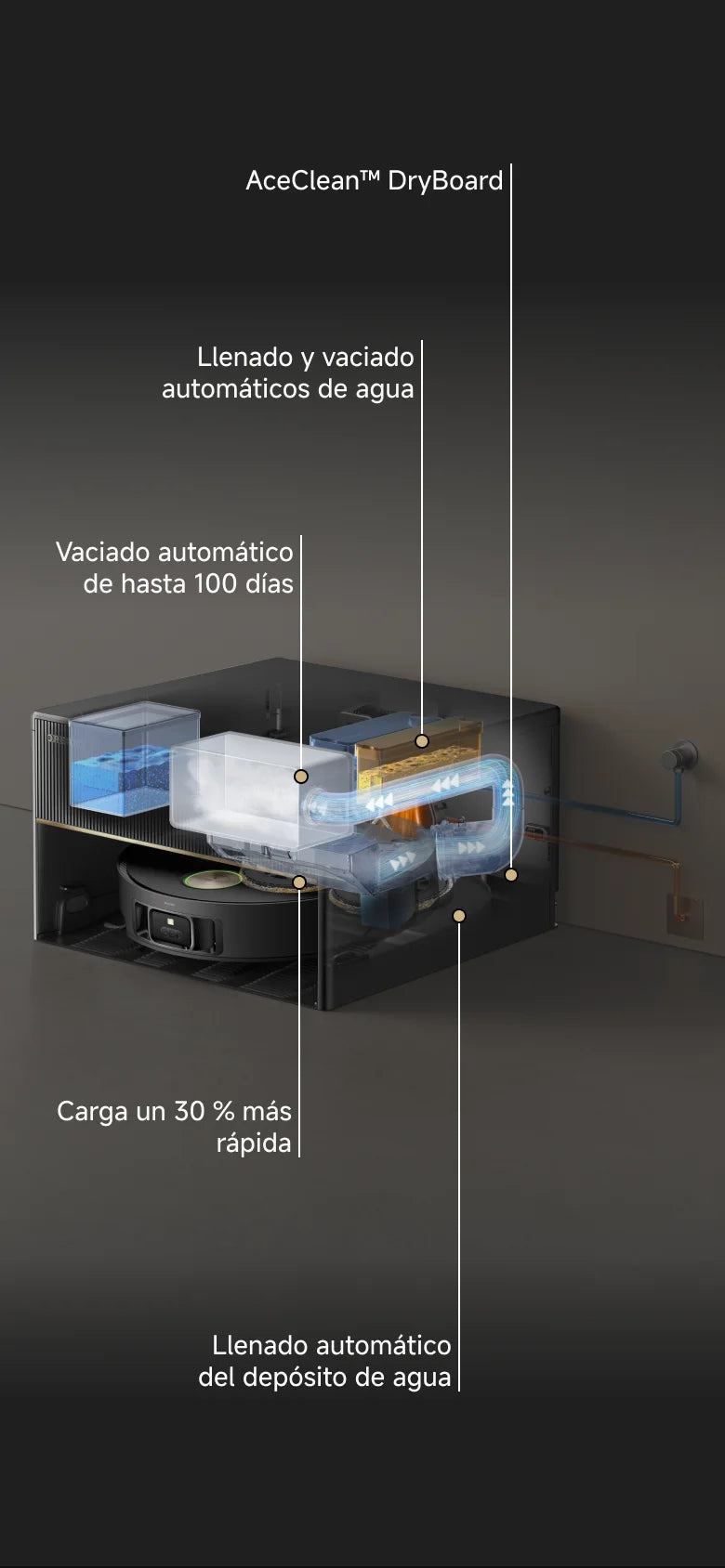 *El doble lavado de mopas y el doble fregado de suelos estarán disponibles cuando el usuario configure esta función en el modo CleanGenius™ en la aplicación Dreamehome.