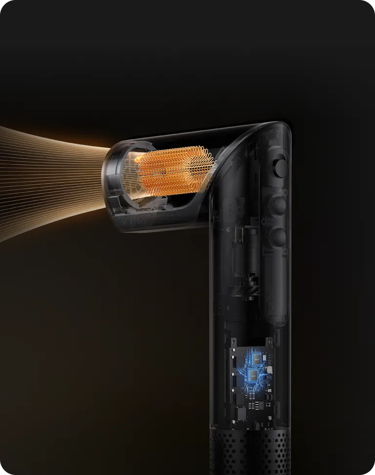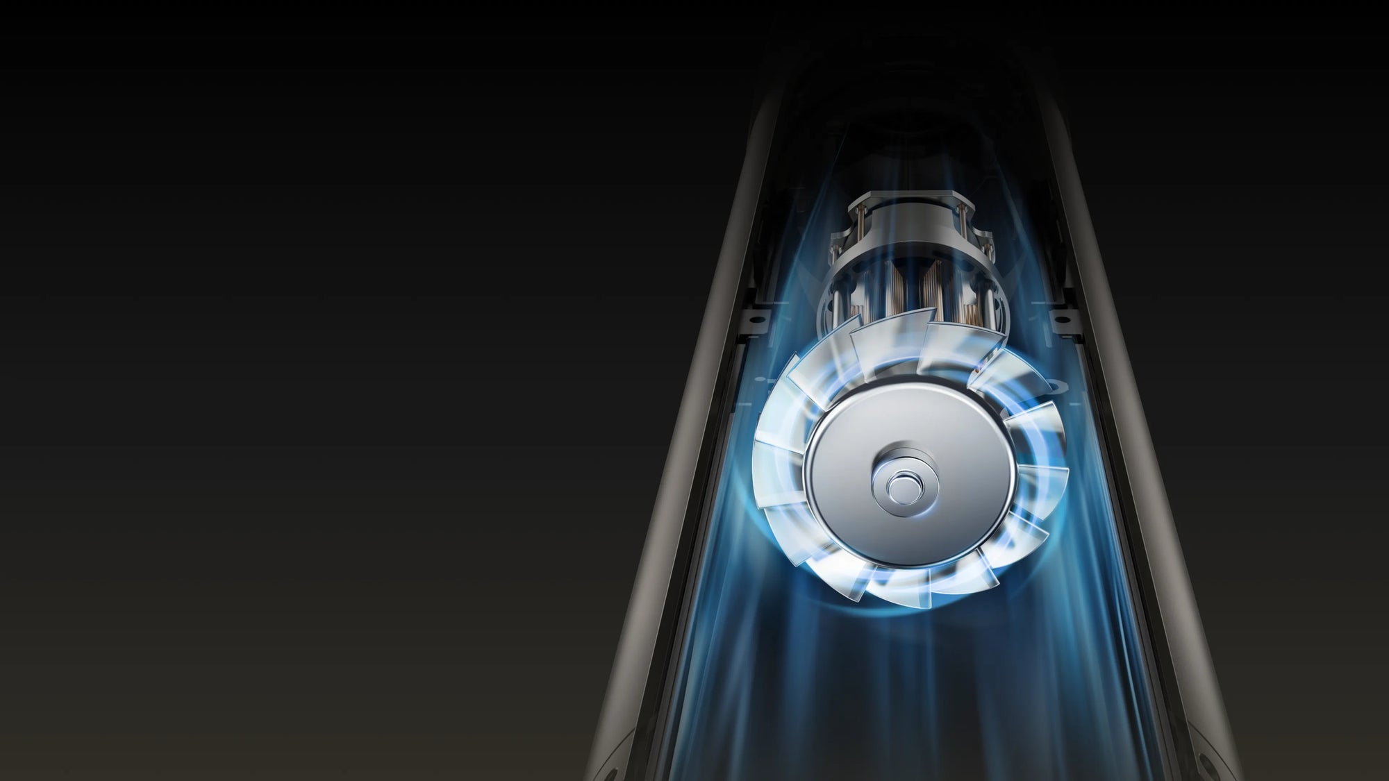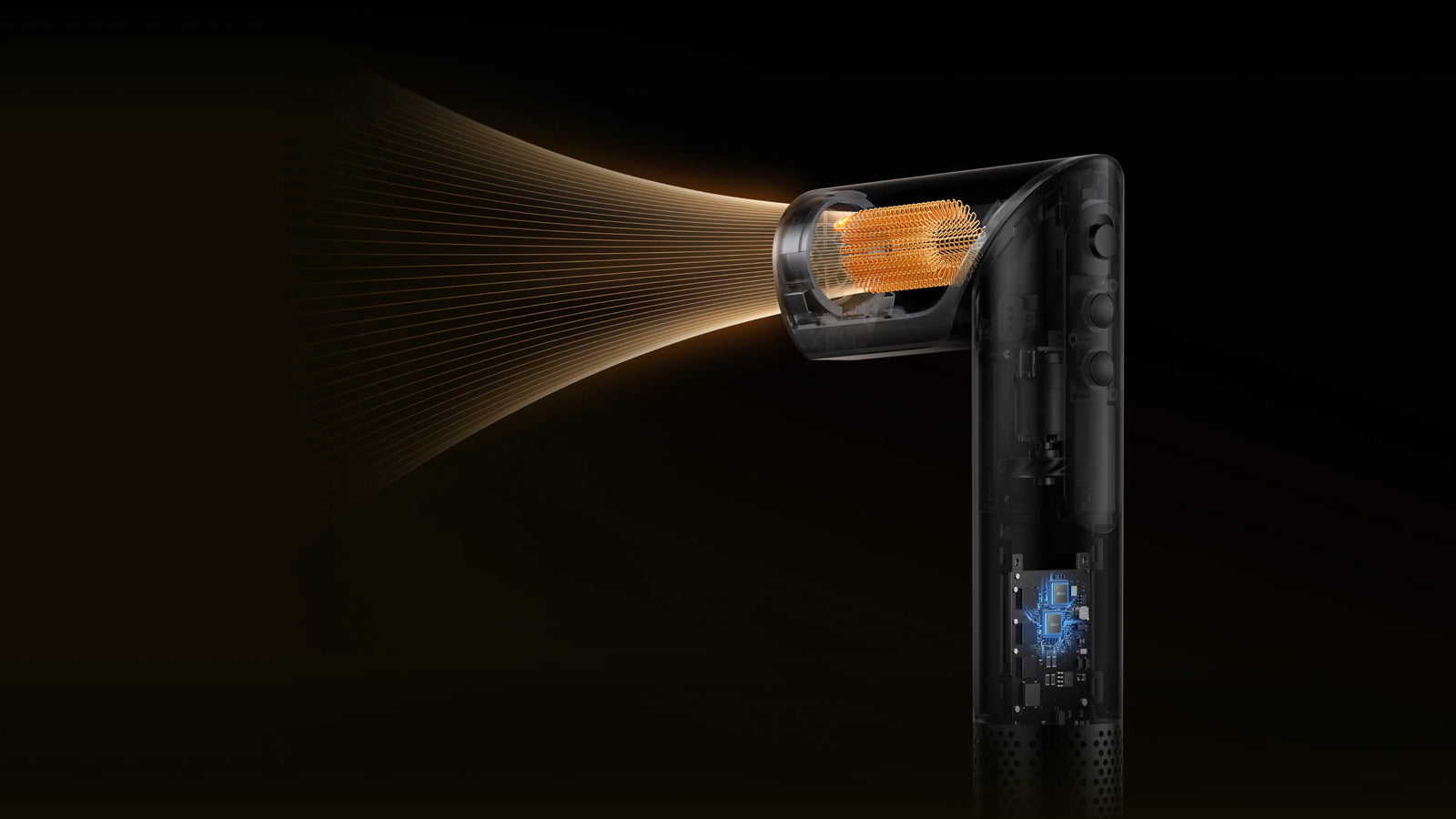 Un motor de alta velocidad y un flujo de aire potente logran un secado rápido y eficiente.
