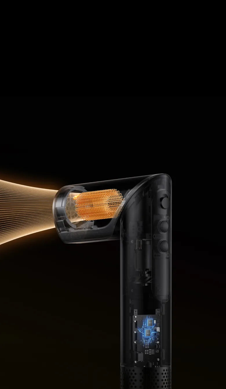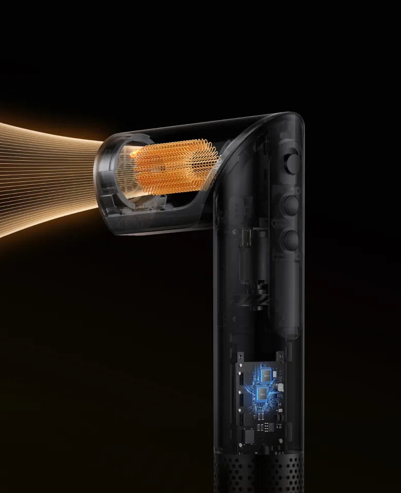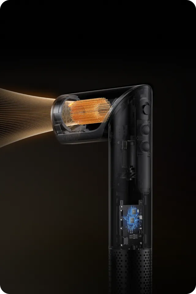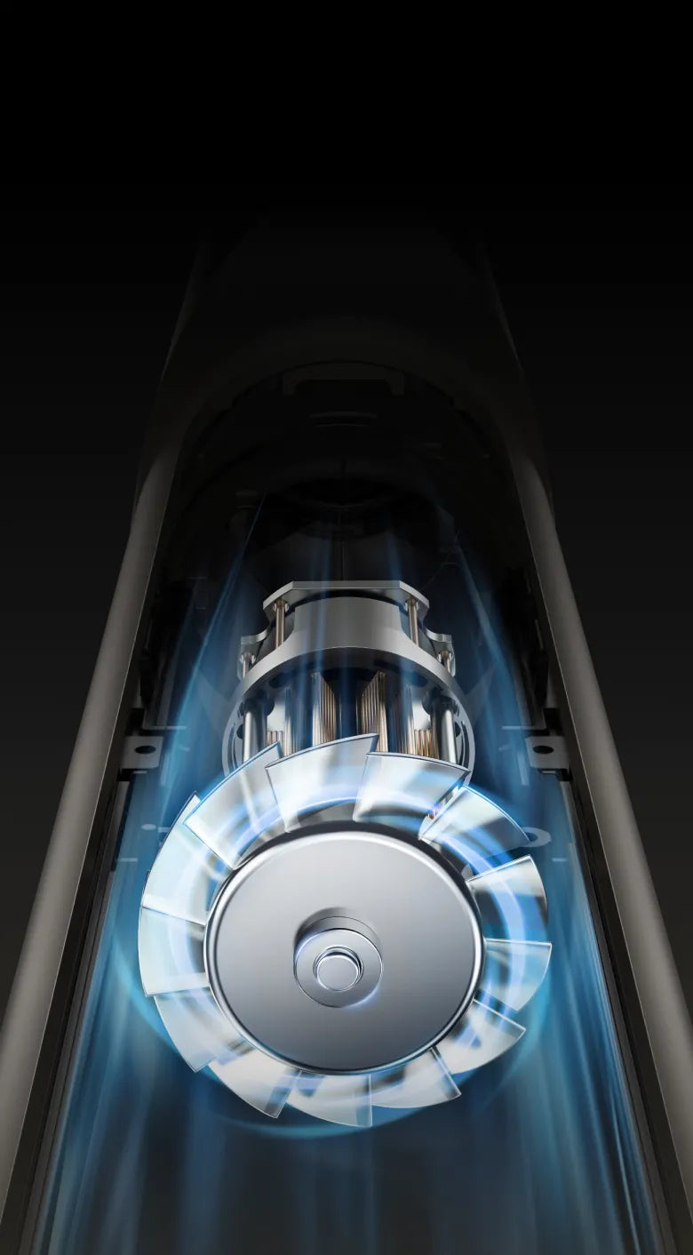 Un motor de alta velocidad y un flujo de aire potente logran un secado rápido y eficiente.