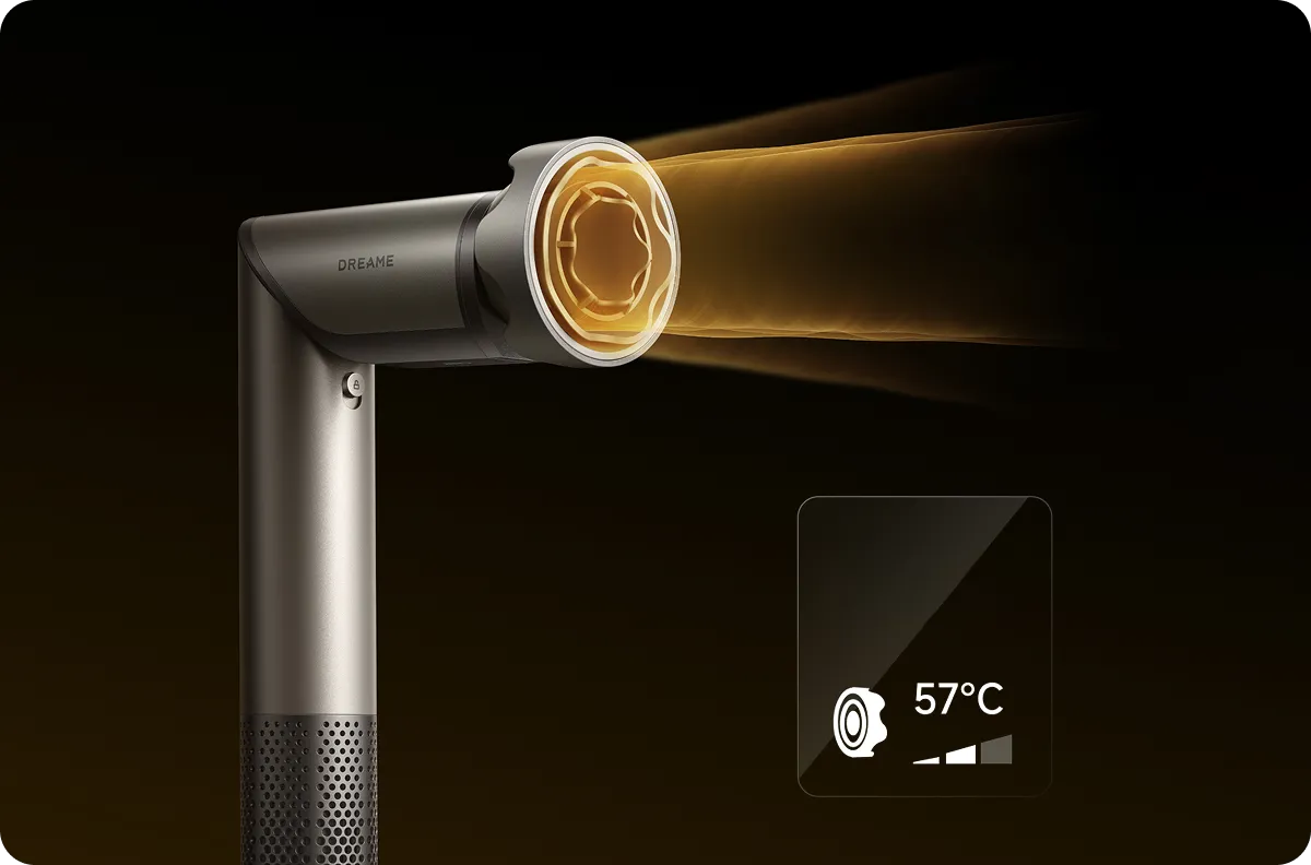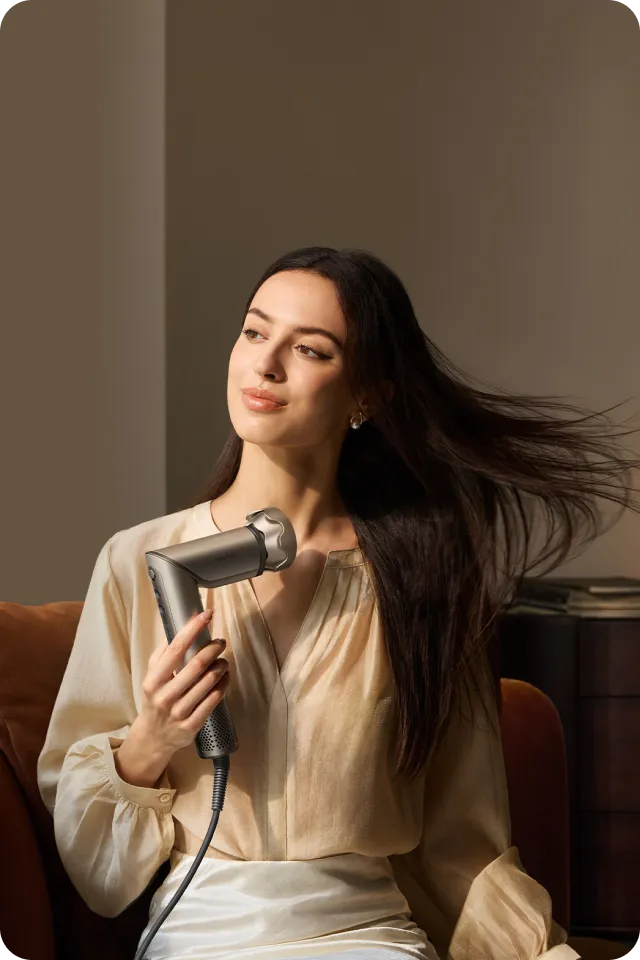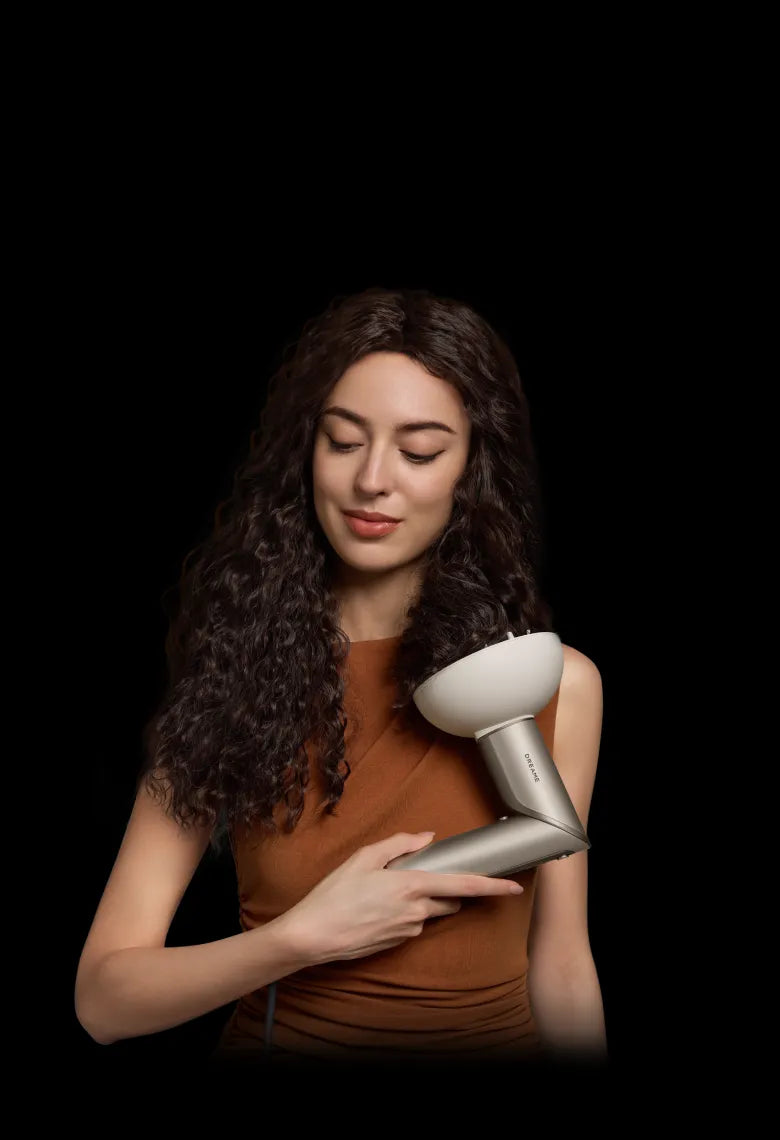 Al detectar la boquilla rizadora, Dazzle activa automáticamente el modo de Rizado, con 10 segundos de aire templado para moldear, 5 segundos de aire frío para fijar y una pausa de 7 segundos para facilitar el peinado. Un control inteligente que permite lucir rizos suaves y naturales.