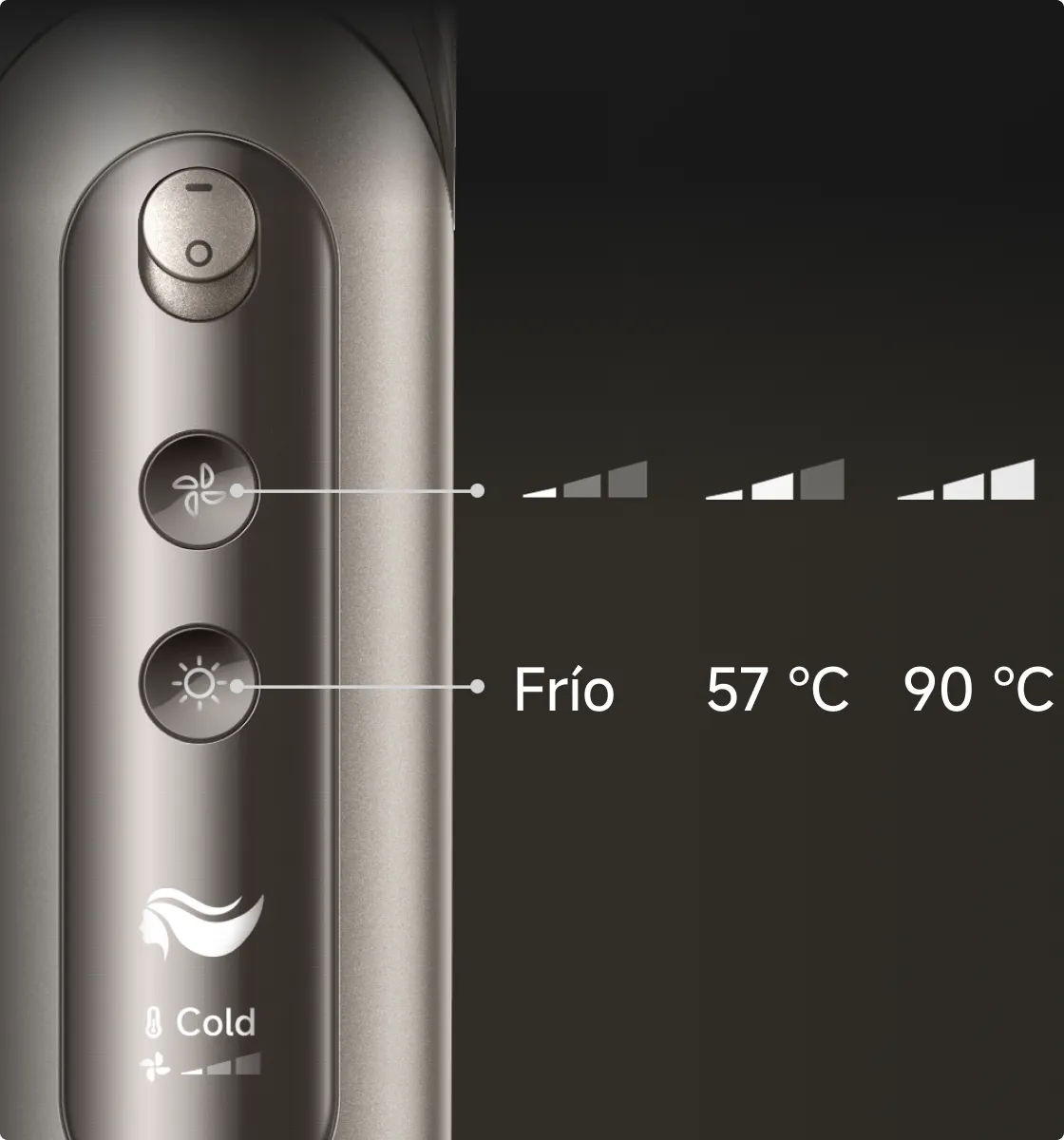Dazzle ofrece 3 modos de moldeado y 3 velocidades del aire para permitir el control manual y adaptarse a distintas preferencias y tipos de cabello; desde flujo de aire suave para pelo fino hasta secado potente para aumentar el volumen.