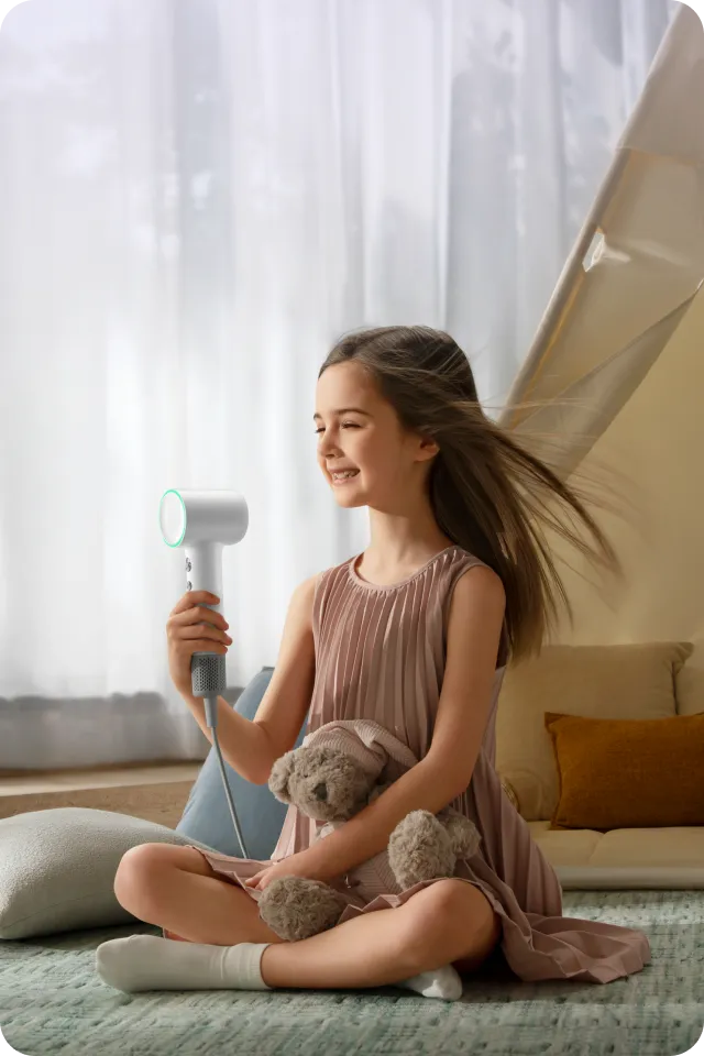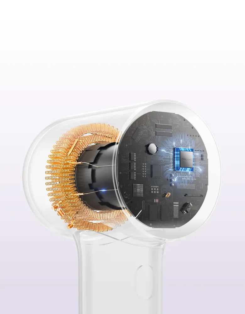Un generador de iones negativos integrado libera 200 millones de iones negativos* para dominar el encrespamiento y sellar las cutículas del cabello, fijando la humedad y potenciando el brillo.