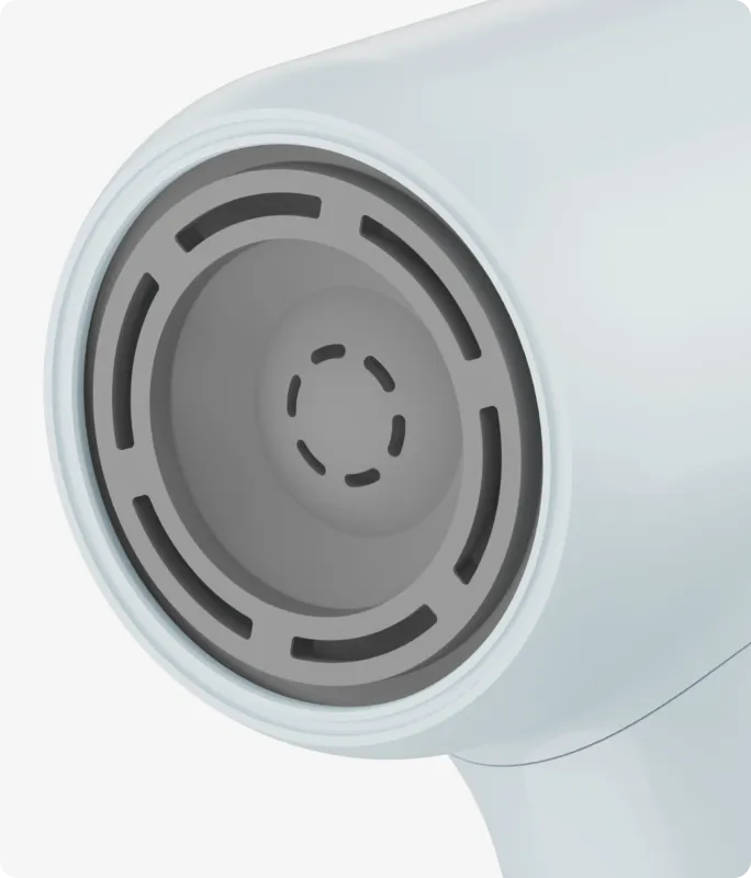 La entrada de aire extraíble permite realizar ajustes flexibles en el agarre, a la vez que reduce el riesgo de enredos de pelo y permite limpiar fácilmente polvo, gel o restos.