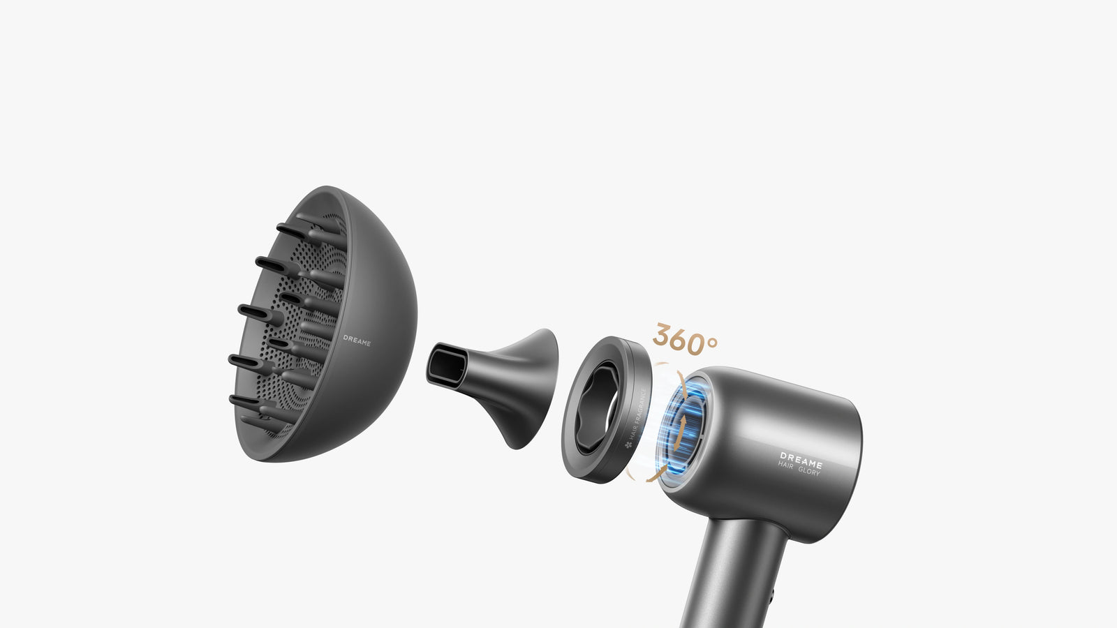 Hair Glory Mix agiliza el secado con boquillas magnéticas intercambiables adaptadas a distintos tipos y necesidades de cabello, que incluyen una boquilla de alisado, una boquilla difusora y una exclusiva boquilla de perfume.