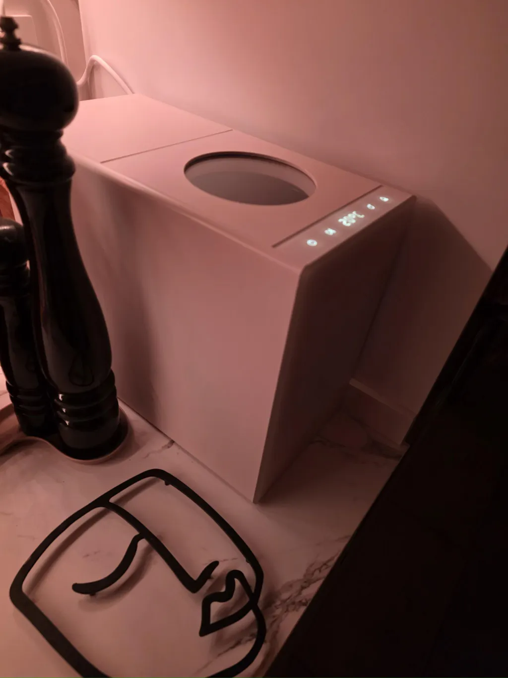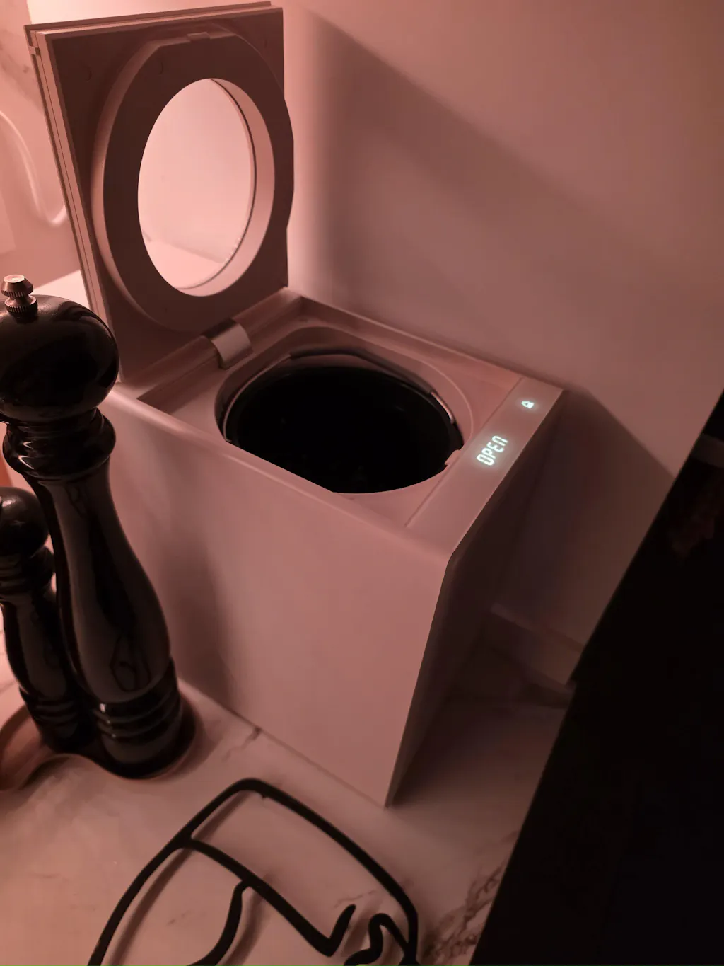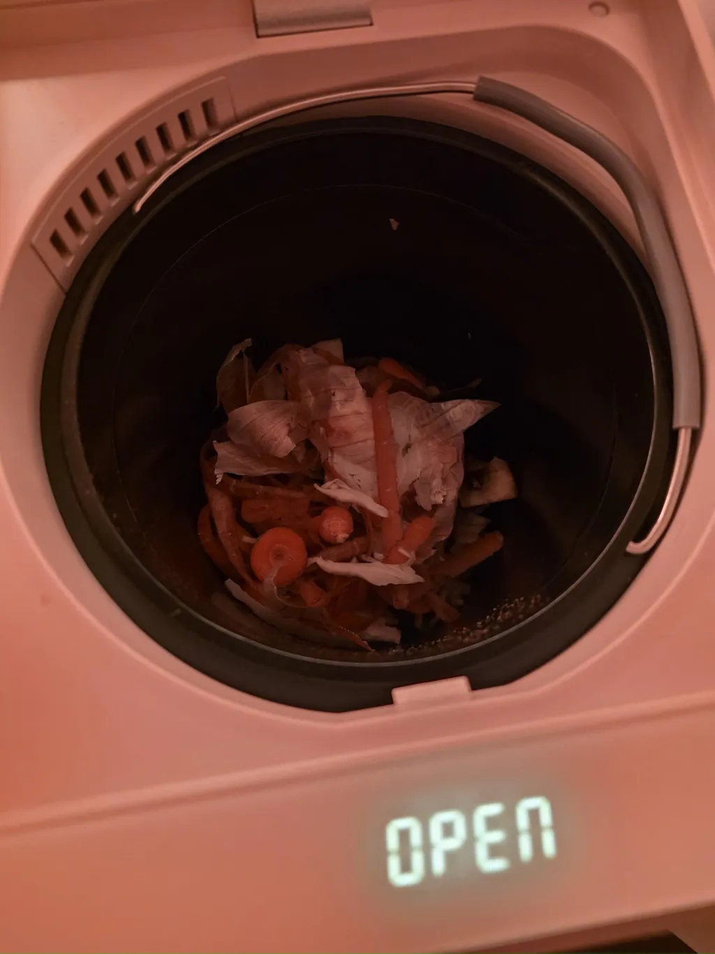 Contiene hasta 2,5 L de basura orgánica de una vez, para encargarse fácilmente de los restos de una familia de tres a cuatro personas.